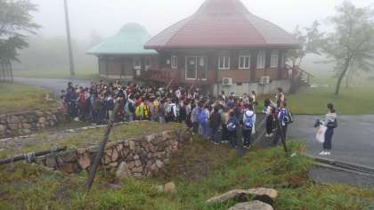 今津に到着しました。今から入所式です!