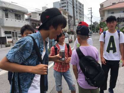 (下段の写真は,沖縄名物の衝撃的なジュースの味に絶叫中の男子です!)