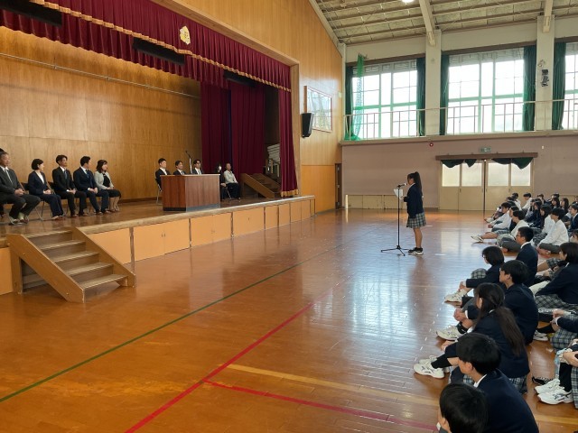 離任する教職員からのあいさつや生徒会のお礼の言葉、