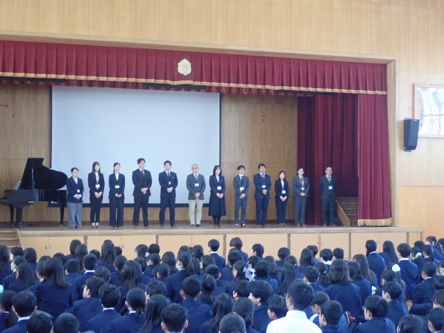 新しいクラスと担任の先生が発表され、新しく着任した先生が紹介されました。