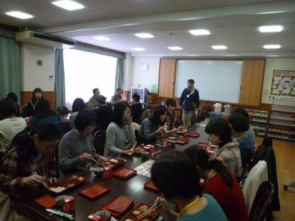23名の方のご参加をいただきました。給食を納品されている業者の方にもお越しいただき、給食についての説明と、参加された方からの質問にお答えいただきました。