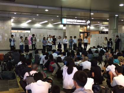 実行委員の生徒から、意気込み発表、添乗員さん、写真屋さんの紹介、学年主任の話を聞きました。いよいよ出発です!