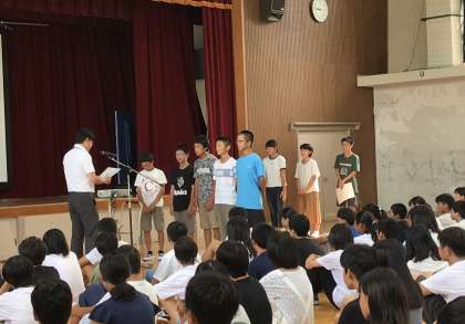 その後、校長先生から、2学期に向けて近衛3大行事(体育大会、音楽祭、文化祭)にしっかり取り組んで欲しいという話と3年生は進路決定に向けて学習にいそしんで欲しいという話がありました。