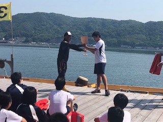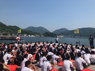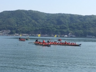クラス対抗ということで、担任の先生も同乗して、クラスそれぞれの掛け声をかけながら漕いでいました。