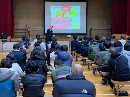 2月10日(月)6限1年生を対象に薬物乱用教室を川端署のスクールサポータの方を招いて行いました。