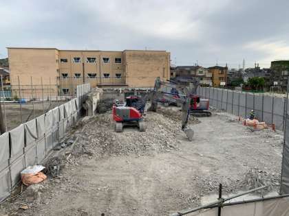 5月12日(火)今日は体育館南側にあった体育管理室・西更衣室・東更衣室がなくなりました。残されているのは,体育館の倉庫部分と南東の壁の一部分だけです。今週中には形が全て無くなりそうです。