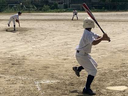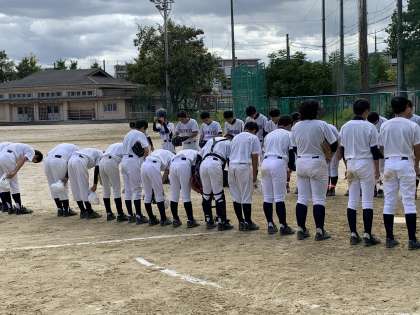 10月12日(日)新人大会野球の部が高野中学校で行われました。予選トーナメントの1回戦です。対戦相手は,岡崎・衣笠・京都文教の合同チームでした。