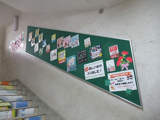 近衛中学校の図書館へ続く階段には,たくさんの本の紹介がされています。学校司書の和田先生が,みなさんが少しでも本に興味を持てるような掲示物を月ごとに更新してくださってます。このコロナ禍だからこそ,ぜひ近衛中の図書館で「お気に入りの本」に出会えることを願っています。