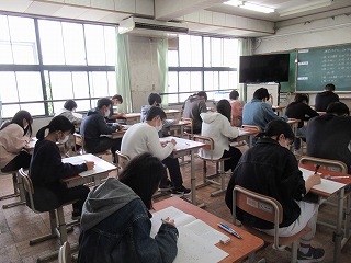 3年生になって初めての学習確認プログラムが5月11日に実施されました。自分の進むべき道を探すための指針のひとつになりますね。また試験の受け方の練習にもなります。みんな時間いっぱい真剣に取り組んでいました。各クラスの実施の様子です。