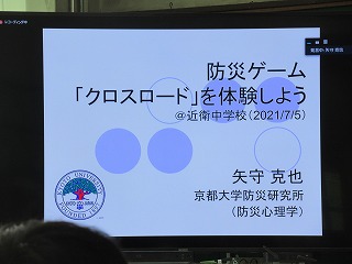 本日5,6時間目は京都大学の矢守先生を招いてzoomでの全校対象の防災学習でした。