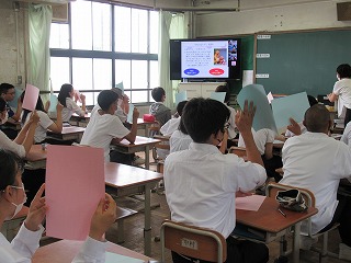 クラスでは自分の考えをみんなに伝え,相手の意見をしっかり聞き,自分と違う考えを認め合う。とても積極的な話合いとなりました。