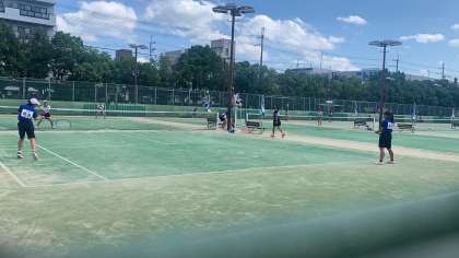 7月22日(木)には西院コートにて個人戦の京都市大会が行われました。出場している皆が地区予選を勝ち上がってきたメンバーというだけあって,どのコートでもレベルの高い試合が行われていました。近衛は1回戦を勝ち上がるペアがあったり,強豪ペア相手に善戦する姿もありました。今日で近衛としての夏季大会は終わりました。