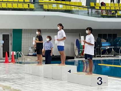 7月27日・28日に水泳の府下大会が京都アクアリーナで行われました。近衛中からは1年生男子1名,女子3名が参加しました。