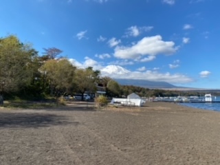 これから山中湖のKABAに乗ります。白鳥の船も浮かんでますね。