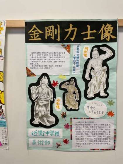 近衛中学校が担当した「金剛力士像」の模写や,作品について調べた内容をポスターにしました。とても力強い,かつ精巧な金剛力士像が描けたと思います。レタリングもとてもきれいですね。