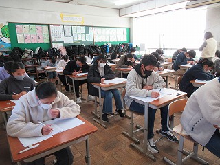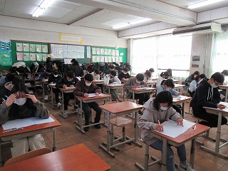 サラサラとシャーペンを動かす人,考えている人,でもみんなとても真剣でさすが3年生テストを受ける様子も,堂々としていました。