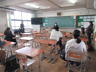 今回は2組で校長先生から激励のことばをいただきました。3組はリモートでした。