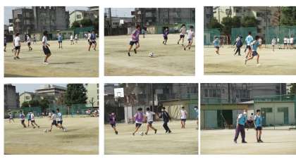 今日も球技大会日和でした。1,2時間目に昨日の1年生と同じく,男子はサッカー,女子はバスケをしました。友達に掛け声をかけて,「右」「そこや」「もっと前」などとても一生懸命でした。見ている方も清々しい気持ちになりました。N先生も男子に交じって,ビブスもつけてサッカーをしてくださってました。先生もみんなも一緒に楽しんだ球技大会でした。