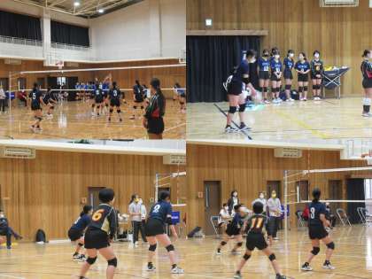 バレー部の初戦は大淀中学校が対戦相手でした。3月にできたばかりの体育館で,本校が会場校となりました。