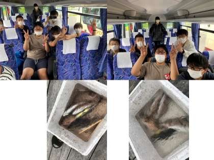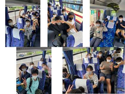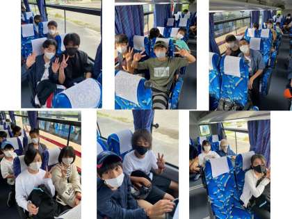 釣り堀から,昼食場所の「とれとれ市場」に向かうバスの中です。