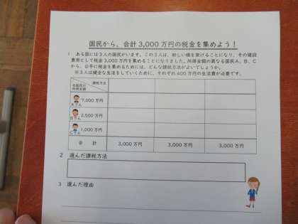 課税方法などを学び、政治をするのは国民の代表の政治家である。みんながその政治家を投票します。選挙は大切です。ということを伝えられました。