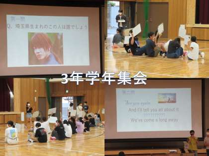 今日、1限〜3限まで各学年ごとの学年集会が体育館でありました。