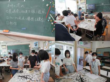 写真は3年生の理科の授業と2年生の美術の授業です。