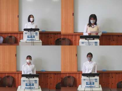 「今日は待ちに待った近衛音楽祭です。1年生はもちろん私たち3年生も会場も合唱も全て初めてです。今日までの間、正直何も想像できていない人も多かったと思います。私ももちろん同じです。でも1つだけわかっていることがあります。それは合唱を通してクラスの絆が深まったということです。A先生もよくおっしゃっていますよね、仲間を信じぬいたクラスが必ず勝つ!!最後まで仲間を信じて、怖がらずに、大きな声で私たちの思いを表現しましょう。今までより何段階もレベルアップした私たちの思いを、今日の合唱で爆発させましょう。それでは1日がんばりましょう。」