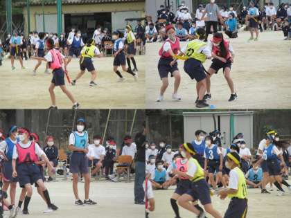 プログラム11の色別種目の「しっぽとり」です。後ろについたタグをとるというルールのものです。みんな機敏な動きでしっぽ(タグ)をとっていました。