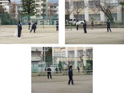 寒さにも負けず、2年生はテニスをしていました。はじめはみんなで、ボレー練習をしてそのあとは、試合形式を楽しんでいました。みんな真剣で、それでいてとても楽しそうにテニスをしていました。