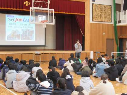 1月18日 2年生 ジョイJOBランド前の学年集会