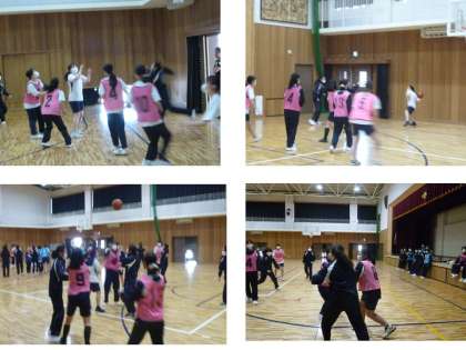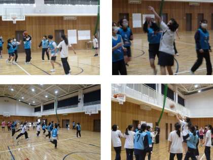女子は体育館でバスケットボール、男子はグランドでサッカーでした。