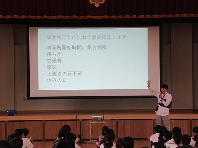 『この体験ができることは、各事業所の方、保護者の方のご協力によるものです。感謝をしてください。そしてこの4日間で働くということを経験して、大きく成長してください』