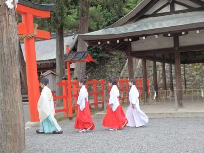 吉田神社でのチャレンジ体験のようすです。今日は毎月1日に行われる月祭事に参列しました。前日にはお供え物の準備や着付けの練習を行い今日を迎えています。張り詰めた空気の中、緊張の面持ちでしたが、貴重な体験をさせて頂いていました。
