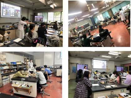 クラスごとに分かれて実験室で学習しています。
