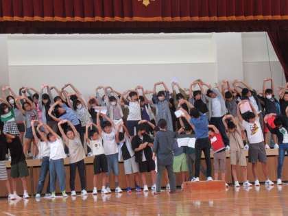 始めはリラックスするために、手をあげて右、左に・・・声を出すのにリラックスは大切なんですね。