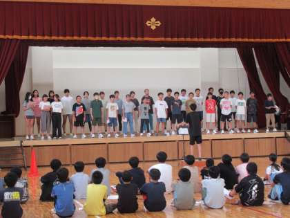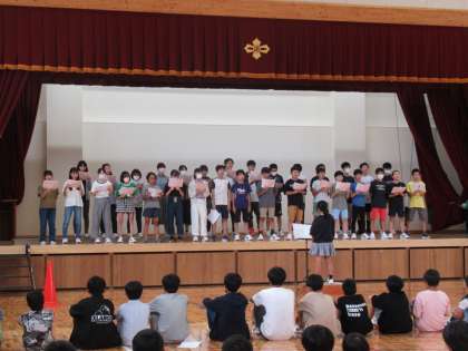 全員で歌ったあと、各クラスも体育館ステージで練習しました。