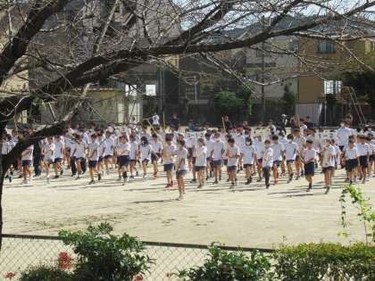 みんな笑顔で,練習をしていました。競技をしている人も応援をしている人も楽しそうです。