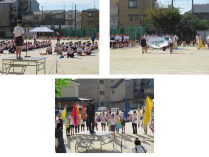生徒会長のあいさつがあり、保健体育委員長の選手宣誓がありました。