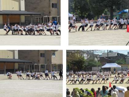 色別で学年ごとの綱引きでした。みんな気合が入っていました。