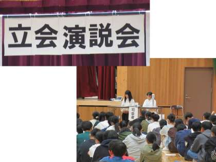 今日の5限は生徒会本部役員選挙の立会演説会でした。