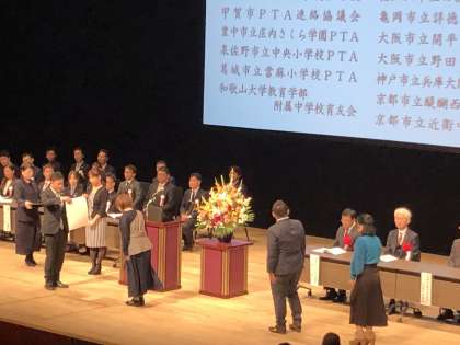 PTA会員の保護者の皆様には、いつもPTA活動にご協力いただき、ありがとうございます。近畿の数多くの学校の中から、その取組や功績を認められ、表彰されたことは、現在のPTAの活動だけでなく過去のPTAの活動が認められた結果です。