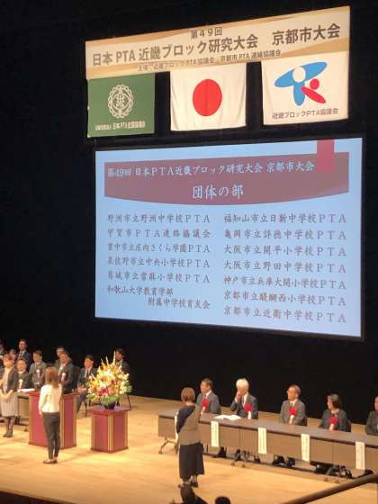 第49回日本PTA近畿グロック研究大会京都市大会にて、本校PTAが、令和5年度近畿ブロックPTA協議会団体表彰を受けることになりました。