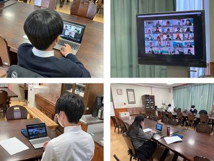 12月22日の午後、左京支部交流会が行われました。左京支部の中学校8校の生徒会本部がZOOMで繋がり、各校の生徒会活動の取り組みを共有したり困りごとを相談したりしました。