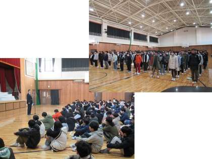 校長先生のお話では、まずは元日の能登半島地震について自分たちのできることを・・・そして、太宰治の言葉を引用され、勉強というものは大切なもの、将来必要でないと思われる勉強こそ将来の自分をつくる大切なもの。