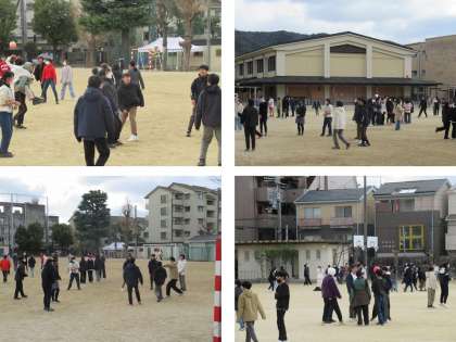 寒い中でもグランドではクラス数の円陣ができていました。