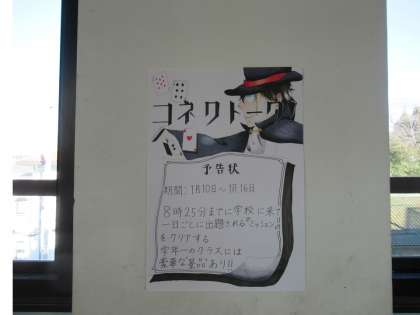 評議会からの近衛Weekの取組「コネクトーク」の素敵なポスターが廊下に貼ってあります。いろんな人とコミュニケーションをとるという取組です。