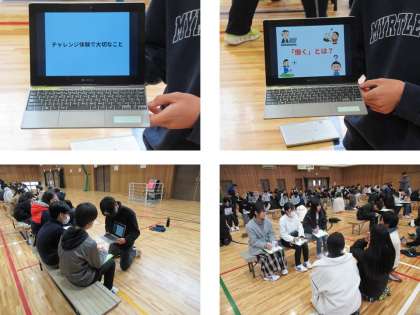 1月31日の6限に2年生のチャレンジ体験の発表が、1年生にむけてありました。