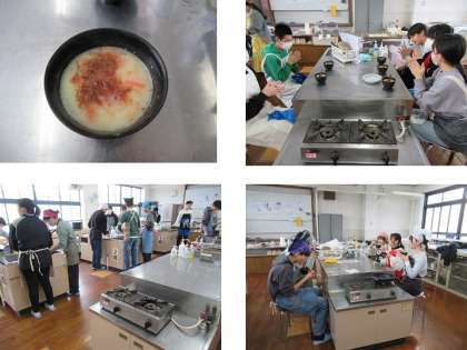 授業でお出汁の学習をして、今回郷土料理の学習も兼ねて、京都ならではの白みそを使ったお雑煮の実習だったのですが、白みそのお雑煮を初めて食べるという人もいて、みんな「おいしい〜」ととても喜んで食べていました。