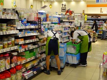 商品の品出し、バックヤードでの作業もがんばってます。
